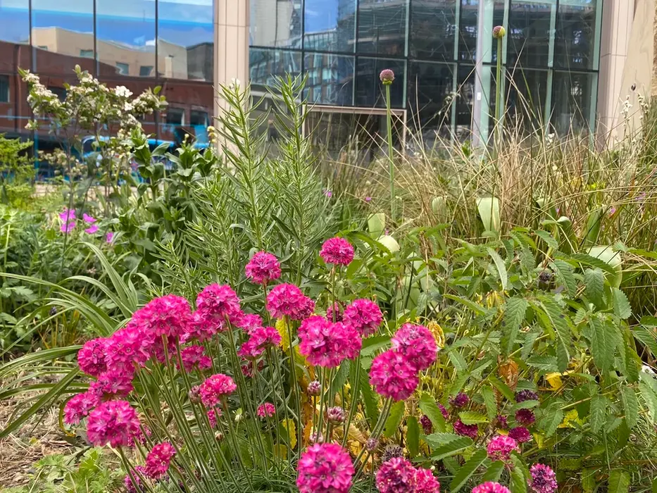 Biodiversity measures such as wildflower planting and trees create valuable green space in dense urban environments, supporting pollinators and improving air quality.